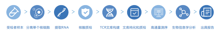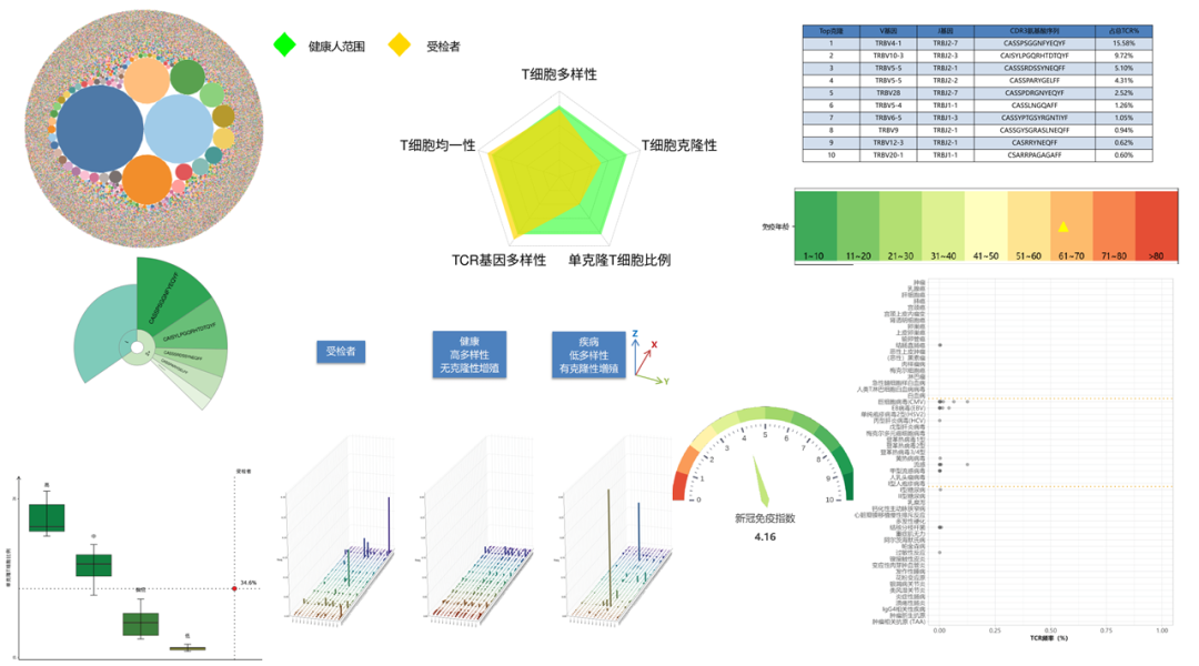 另外我们还通过对比艾沐蒽“TCR-抗原病理数据库”进行多种疾病相关TCR筛选,检测感染过的疾病,以防再次感染。