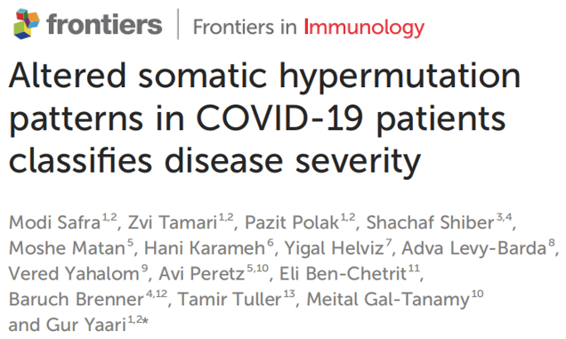 参考文献:Safra M, Tamari Z, Polak P, et al . Altered somatic hypermutation patterns in COVID-19 patients classifies disease severity. Front Immunol. 2023 Apr 19;14:1031914.