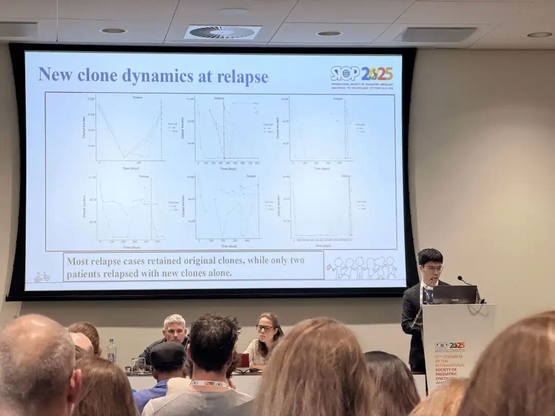 儿童 ALL 治疗过程中,NGS MRD检测中“新克隆” 的出现常让临床医生和家长担忧是否意味着白血病复发。陈博士的发言系统阐明了 “新克隆” 的产生机制与临床意义:大多数新克隆源自免疫重建过程,并非白血病复发,且在数月内可自行清除,仅少数持续存在者提示复发风险。这一结论为临床医生判断病情、制定治疗方案提供了关键参考,有效避免过度治疗,缓解不必要的焦虑。