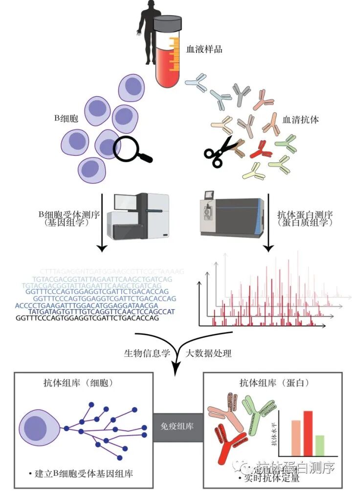 了解了第二代抗体蛋白测序的原理和流程后,它在检测免疫抗体库中的用途也就一目了然了吧。首先,它可以直接对游离在血清中的抗体蛋白进行测序和鉴定,得到之前提到的抗体蛋白组库,这样就可以与来自同一共体的BCR测序数据库形成相互补充和对比,从而更加精确深入地评估抗体库组成。同时,结合定量蛋白质组学(Quantitative Proteomics),还可以对抗体在不同时间和条件下进行定量分析和准确跟踪,了解免疫系统的实时状态。