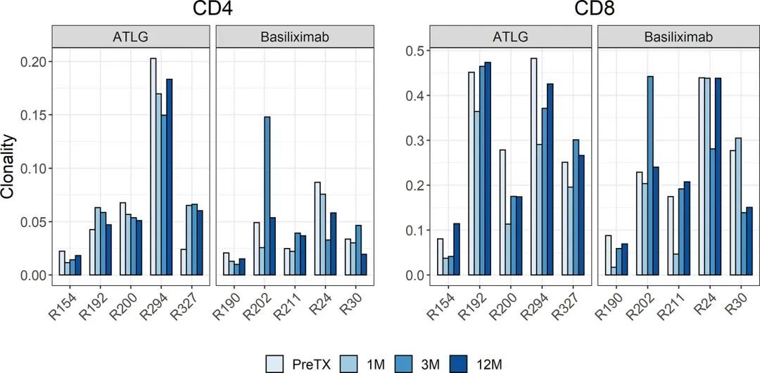 该文章的优点在于对淋巴去除诱导治疗后淋巴细胞再生进行了详细的描述,包括对每位患者的整个循环TCR免疫库和供体特异性T细胞进行了TCR测序。这种深入的测序分析使作者能够获得更全面的数据,以评估ATLG治疗和巴利昔单抗治疗对受体TCR免疫库的影响。这项研究为深入了解ATLG治疗的效果和安全性提供了有力的支持。