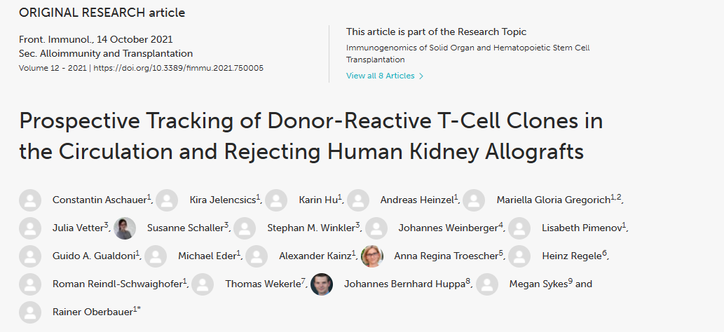 标题:Prospective Tracking of Donor-Reactive T-Cell Clones in the Circulation and Rejecting Human Kidney Allografts