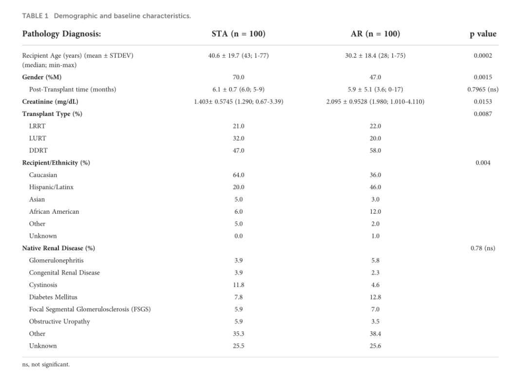 对来自200名特殊肾移植受者的323份外周血样本进行了测序,其中有(n=100)和没有(n=100)活检证实的急性排斥反应。