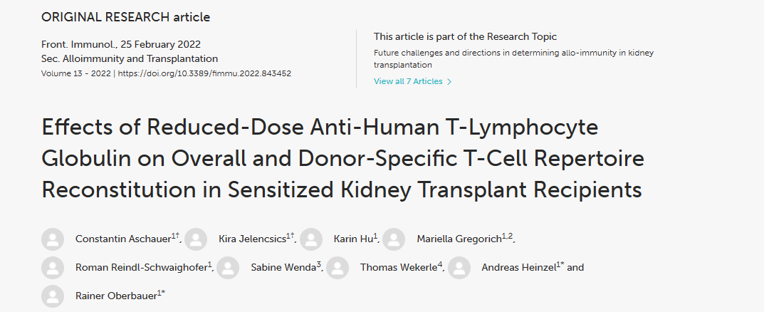 标题:Effects of Reduced-Dose Anti-Human T-Lymphocyte Globulin on Overall and Donor-Specific T-Cell Repertoire Reconstitution in Sensitized Kidney Transplant Recipients