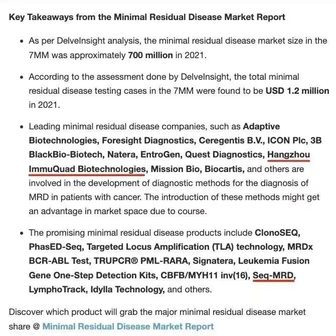 该报告主要调研对象为MRD(微小残留病)