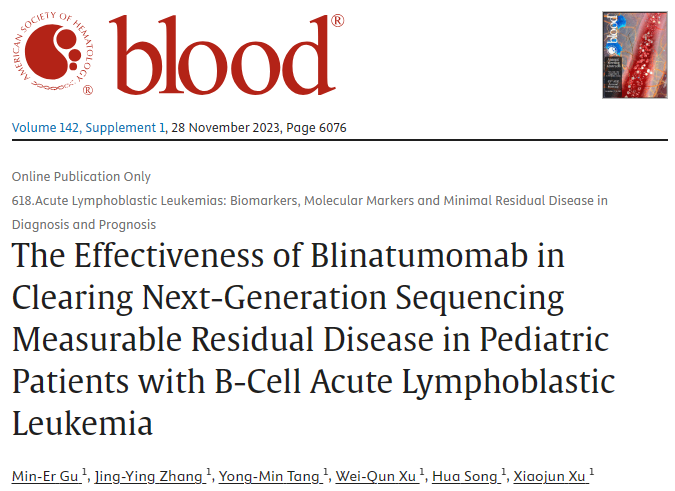 一年一度的美国血液学会(ASH)年会是全球血液学领域规模最大、涵盖最全面的国际学术盛会之一。2023年第65届ASH年会将于2023年12月9-12日在美国圣地亚哥举行,作为全球首屈一指的血液学领域的学术交流盛会,ASH吸引来自全球100多个国家的25000余名血液学专家及医疗专业人士参会,每年都会分享并探讨有关血液学的创新理念及最新的科学和临床研究成果。 浙江大学医学院附属儿童医院血液科的专家团队将在ASH年会上报告最新的儿童B系急性淋巴细胞白血病(B-ALL)研究成果——贝林妥欧单抗(Blinatumomab)在清除基于Seq-MRD®检测的低水平MRD(cutoff 10-6)方面发挥重要作用。
