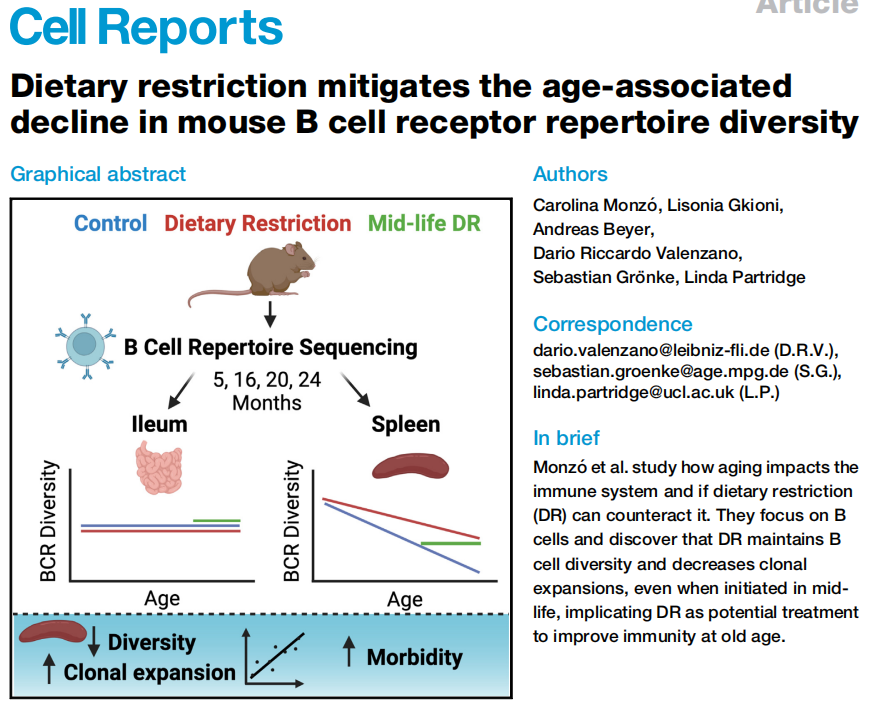 春天来了,又到了“管住嘴,迈开腿”以崭新面貌迎接温暖和煦季节的时候了。合理的控制饮食和适当的运动不仅可以塑造美丽的身形,更重要的是,还可以给我们带来健康的体魄和强大的免疫力。  今天和大家分享一篇文章,作者通过严肃严谨的科学研究发现了有趣的现象——饮食限制(DR)对于延缓小鼠B细胞受体库多样性的衰老性下降具有显著效果,适当控制饮食摄入有可能成为一种对抗免疫衰老的有效策略。下面让我们一起来看看吧~