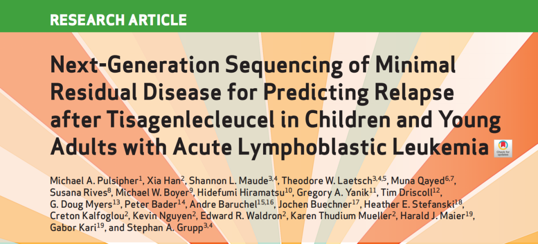 这项研究证实了NGS-MRD检测显著增加了骨髓中白血病细胞的敏感性水平,提前发现复发的可能性。研究表明迄今为止使用tisagenlecleucel进行CAR-T细胞治疗后第一年内任何给定时间评定复发风险的最佳生物标志物是对骨髓的NGS-MRD检测。