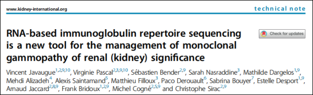 1. Javaugue V, Pascal V, Bender S, et al. RNA-based immunoglobulin repertoire sequencing is a new tool for the management of monoclonal gammopathy of renal (kidney) significance. Kidney Int. 2022;101(2):331-337. doi:10.1016/j.kint.2021.10.017