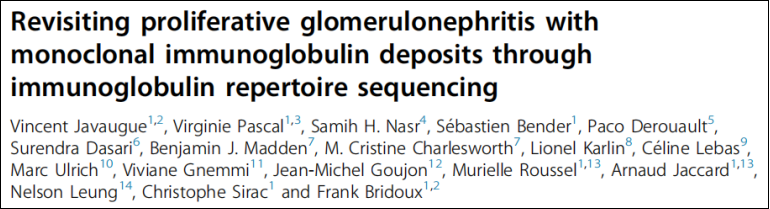 2. Javaugue V, Pascal V, Nasr SH, et al. Revisiting proliferative glomerulonephritis with monoclonal immunoglobulin deposits through immunoglobulin repertoire sequencing. Kidney Int. Published online September 24, 2025. doi:10.1016/j.kint.2025.07.039