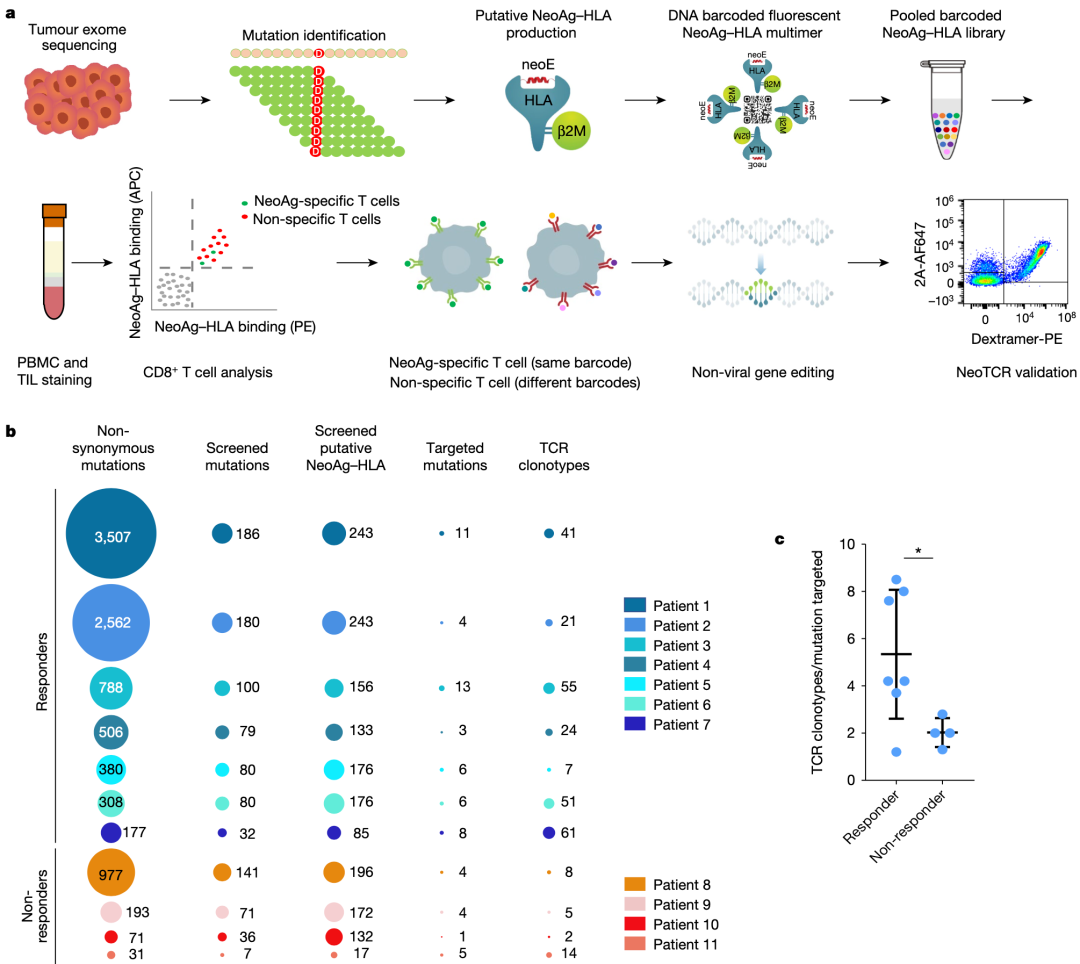 新抗原(neoantigens)是源自人类白细胞抗原(HLAs)呈现的非同义突变的肽,其被抗肿瘤T细胞识别。大量的HLA等位基因多样性和有限的临床样本限制了对患者治疗过程中新抗原靶向T细胞反应的研究。