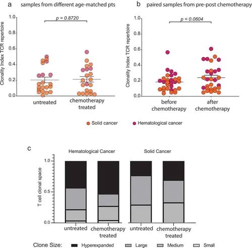 图6.化疗对肿瘤患者T细胞克隆的影响。