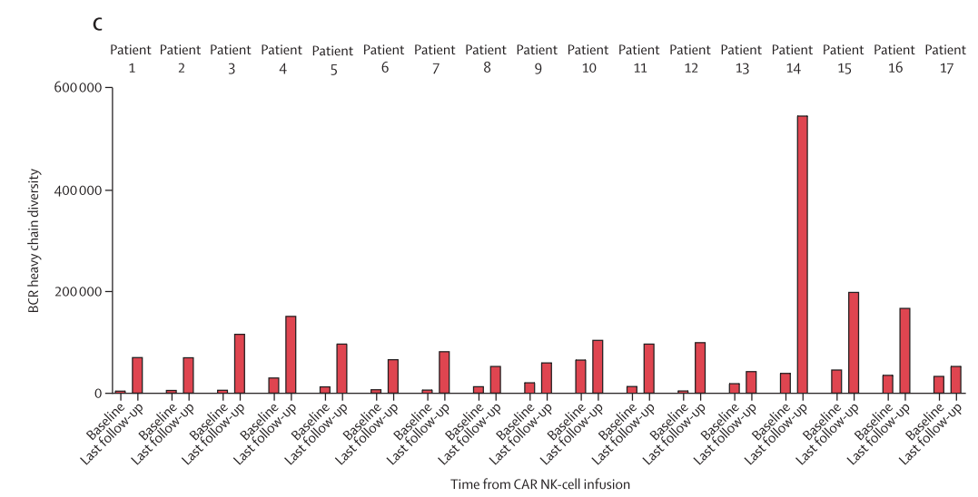 治疗前异常扩增的致病性B细胞克隆大幅收缩,B细胞受体库的整体多样性显著提升,polyclonal特征恢复,意味着自身反应性克隆被有效清除。(fig 4)