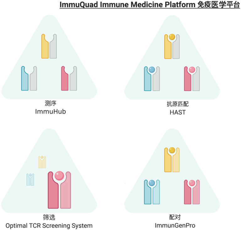 HAST(High-throughput screening for Antigen Specific TCRs)抗原特异性T细胞受体的高通量鉴定系统配合Immuhub平台可一次性匹配上百个抗原刺激后产生的TCRs,以发现病人目前或者过去免疫系统识别到的疾病抗原。