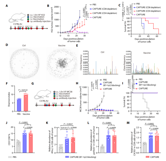 在黑色素瘤(B16-OVA)、肝癌(H22)和结肠癌(MC38)的小鼠模型中,CAPTURE展现了惊人的效果: