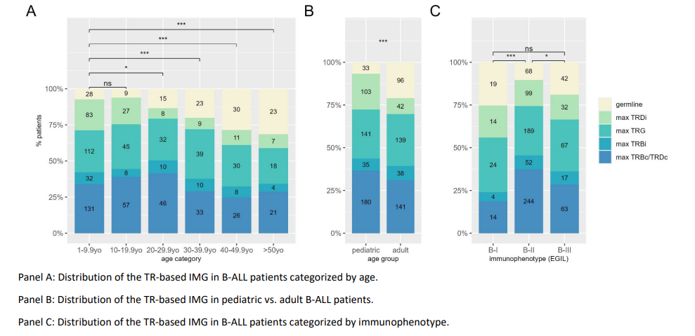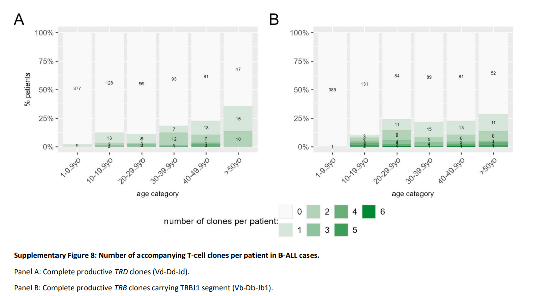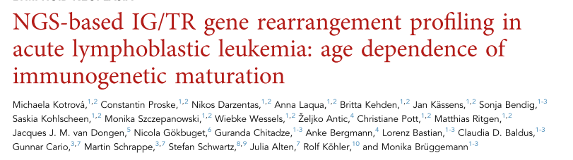 参考文献:M Kotrová, C Proske, N Darzentas, et al., NGS-based IG/TR gene rearrangement profiling in acute lymphoblastic leukemia: age dependence of immunogenetic maturation. Blood 2025, 146 (5): 585–589