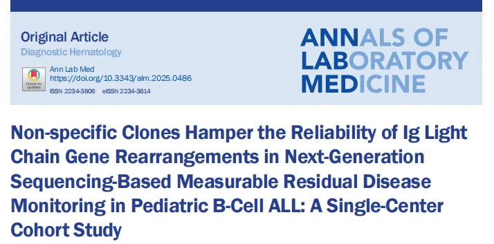 5、CHEN HP, MIAO J, FAN LY, et al. Non-specific clones hamper the reliability of Ig light chain gene rearrangements in next-generation sequencing-based measurable residual disease monitoring in pediatric B-cell ALL: A single-center cohort study[J]. Annals of Laboratory Medicine, 2026.