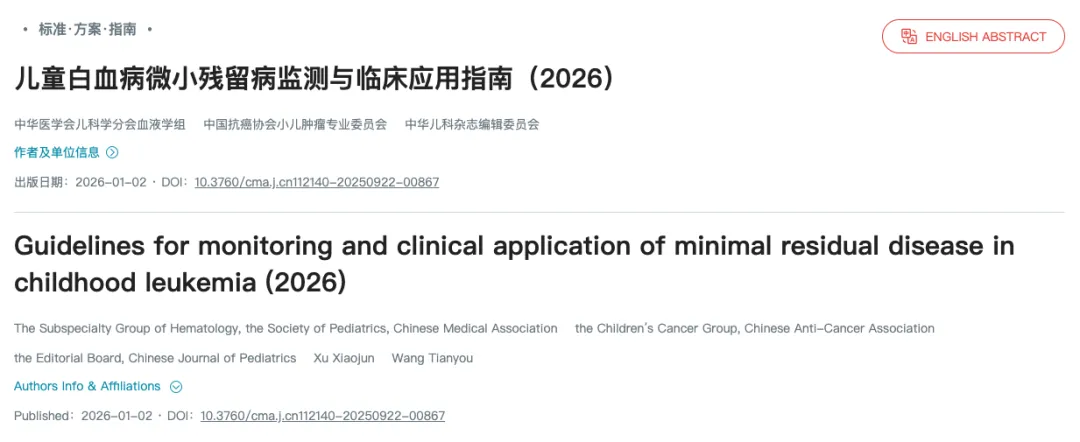 艾沐蒽创始人参与了中华医学会儿科学分会血液学组等权威机构联合发布的儿童白血病微小残留病监测与临床应用指南(2026)》的撰写,为NGS MRD指导临床治疗的标准化与规范化提供重要指导意见。