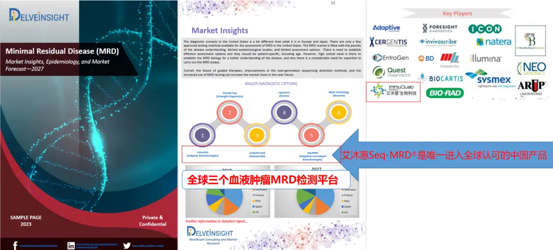 2023年DelveInsight公司发布的MRD国际市场研究报告中,艾沐蒽/Seq-MRD®是中国唯一一家公司/产品进入国际调研市场报告。DelveInsight是一家领先的医疗保健市场研究和商业咨询公司,以其现成的联合市场研究报告以及为医疗保健行业的公司提供的定制解决方案而闻名。