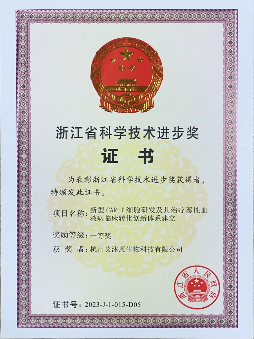 1、艾沐蒽联合浙大附一黄河教授完成的《新型CAR-T细胞研发及其治疗恶性血液病临床转化创新体系建立》获2023年度浙江省科学技术进步奖一等奖。Seq-MRD®在该技术的创新与应用中起到了关键性作用。