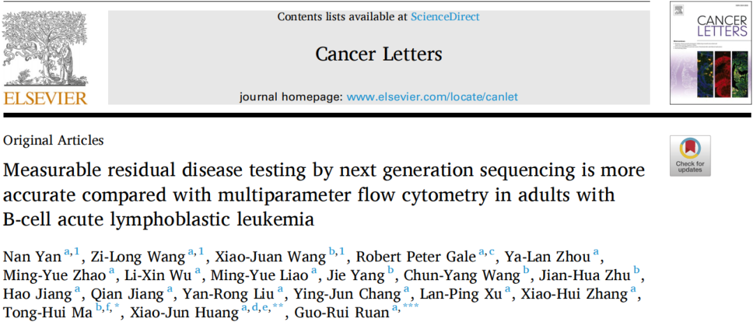 4、Yan N, Wang ZL, Wang XJ, et,al. Measurable residual disease testing by next generation sequencing is more accurate compared with multiparameter flow cytometry in adults with B-cell acute lymphoblastic leukemia. Cancer Lett. 2024 Jul 4;598:217104. doi: 10.1016/j.canlet.2024.217104.